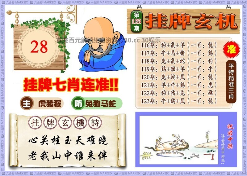 ◎开奖日必开生肖→→戊戌:马虎龙猴猪羊